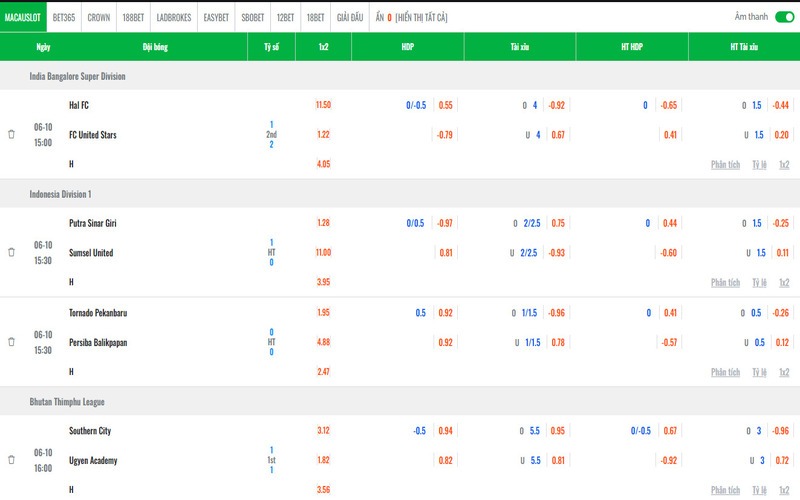 - Đa dạng và đầy đủ: Có thể xem mọi bảng kèo của tất cả trận đấu trong ngày, không bỏ sót bất kỳ giải đấu nào.